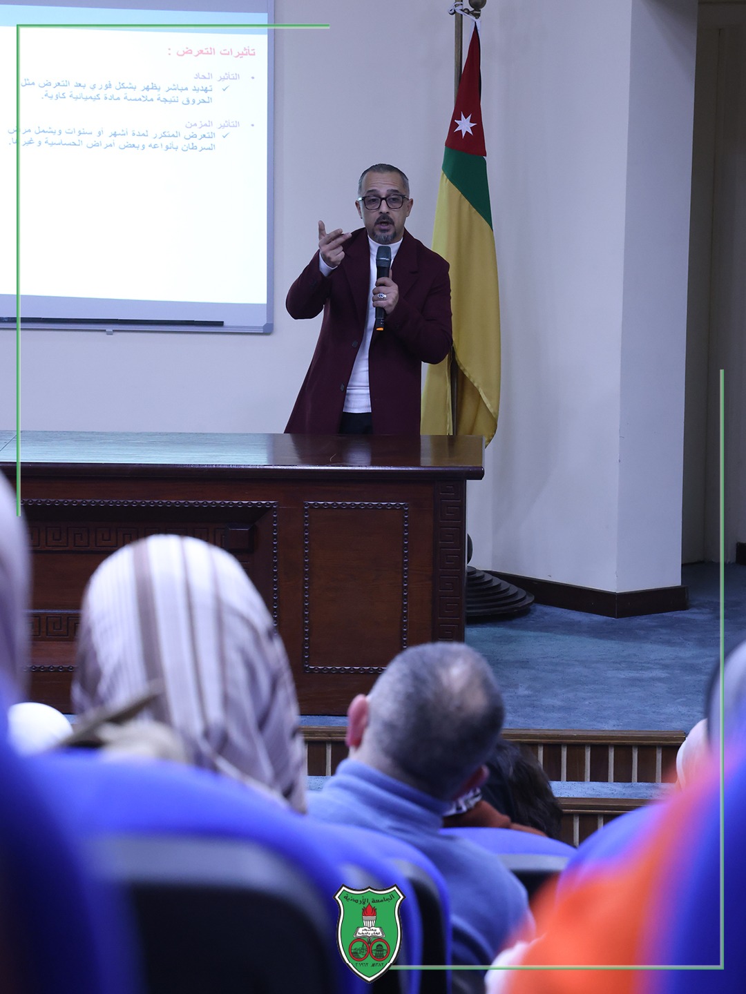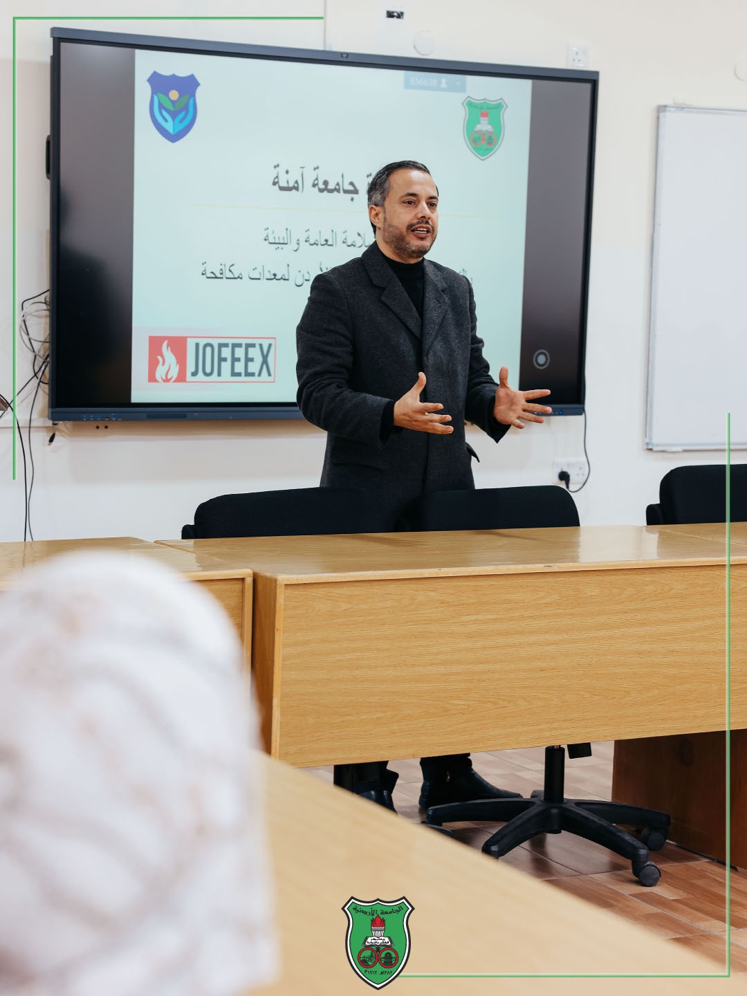 كما يقوم المكتب بالإشراف على تطبيق متطلبات وإجراءات السلامة العامة والبيئة وفقًا للتشريعات والقوانين للحفاظ على صحة وسلامة الطلبة والعاملين في بيئة خالية من المخاطر، وتطبيق إجراءات تابعة لسياسة السلامة العامة والبيئة وعددها (13) إجراء ، ونشر تعليمات الامن والسلامة في الأماكن المخصصة لها، مثل الملصقات والنشرات على مداخل المباني، المختبرات، المكتبة، القاعات التدريسية... إلخ، حيث تحتوي على إرشادات السلامة العامة مث